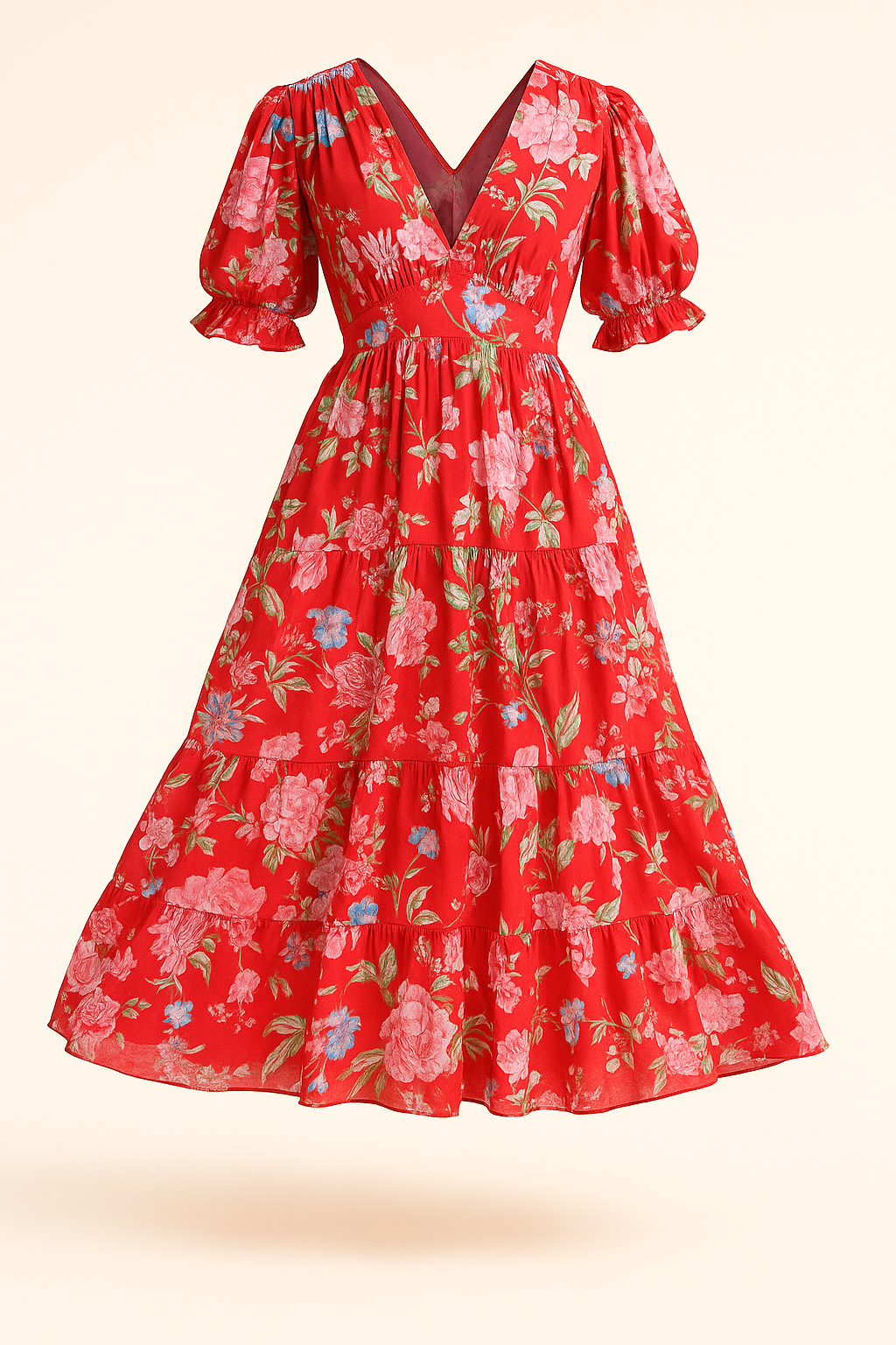 Šaty Floripa jsou jako letní pohlednice z ráje – lehké, vzdušné a pokryté nádherným květinovým vzorem, který připomíná východ slunce nad rozkvetlou loukou. Navržené pro ženy, které milují pohodlí i krásu, se stanou tvým oblíbeným kouskem na jaro i léto.
